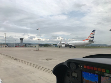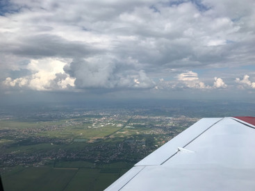 Kurz oberhalb von Bukarest baute sich dann erneut eine breite und sehr tiefe Wand vor uns auf. Wir waren uns rasch einig - in diese Waschküche wollten wir definitiv nicht einfliegen und es auch gar nicht versuchen. Also Heading Süd direkt in die CTR. Wir waren nicht die einzigen wie sich herausstellte welche mit dem Wetter zu kämpfen hatten. Wir wurden entsprechend an den Approach übergeben zur Koordination. Vom Controller geleitet durften wir auf 3500ft gar den Luftraum Alpha queren. Für uns alle eine Premiere 😃.